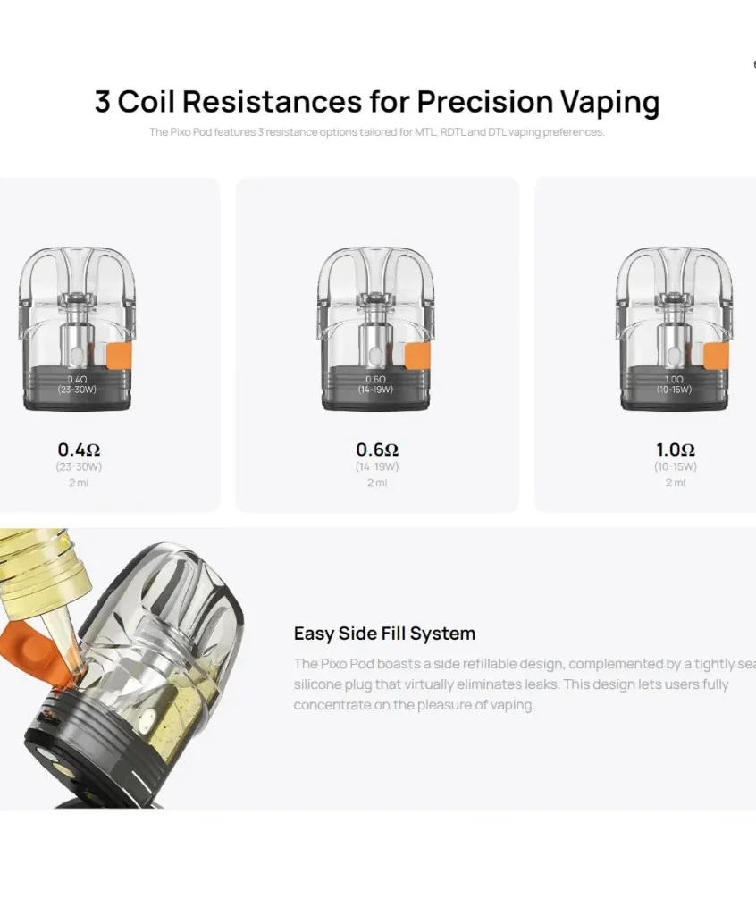 作為 Aspire 官方推出的原廠配件,這款空煙彈無論是在氣密性、導油能力,還是霧化效率上,都遠勝於一般副廠產品。裝填、替換簡單流暢,配合 PIXO 主機可發揮出其最佳性能,確保每一口抽吸都純淨滑順、風味飽滿。