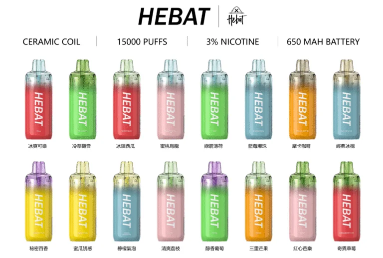 HEBAT 喜贝主打约15000口的高续航设计,远高于一般6000–10000口抛弃式电子烟,特别适合重度使用者或不想频繁更换设备的玩家。