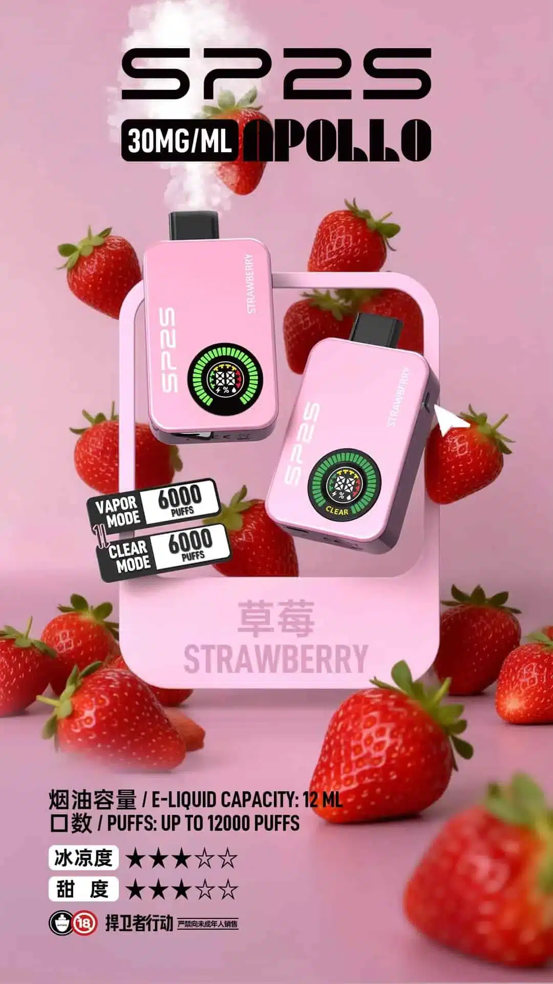 SP2S Apollo 12000口拋棄式電子煙|Mesh線圈雙模式設計・台灣現貨熱銷